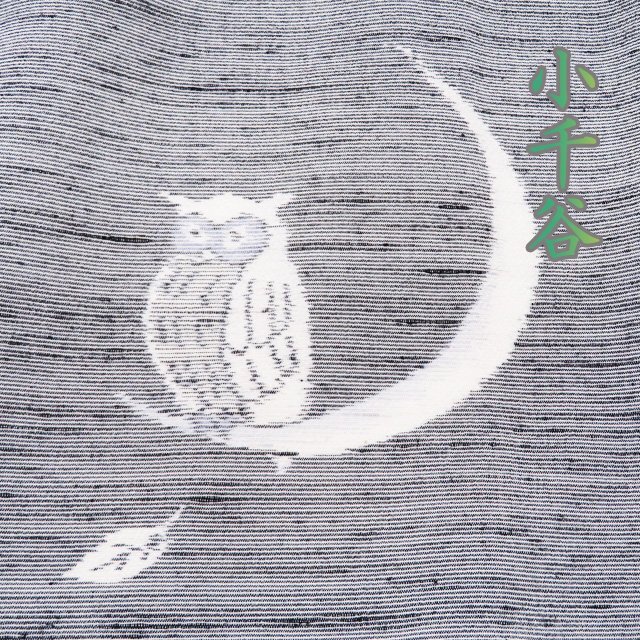 > 特選 小千谷 紬ちりめん 着物 未使用 正絹 袷 カジュアル 月と梟の図 ラベル付き 黒色 白色 身丈160.5cm 裄66cm M きもの北條 A1111-1