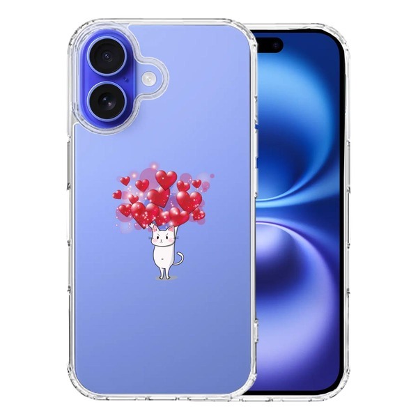- iPhone16 ケース クリア 猫 ネコ にゃんこ ハート いっぱい スマホケース 側面ソフト 背面ハード ハイブリッド