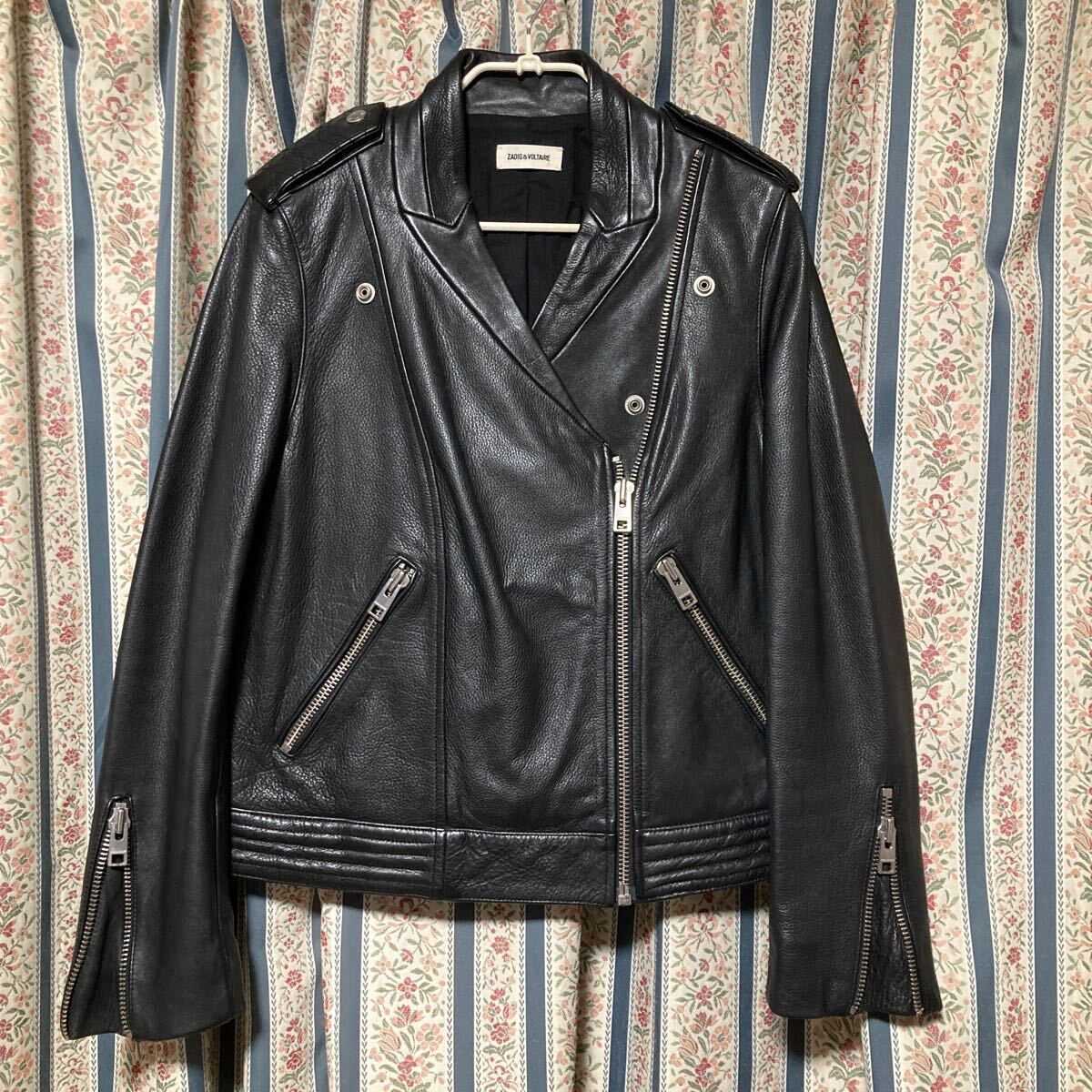> ZADIG & VOLTAIRE ザディグ エ ヴォルテール ノーカラー レザー ダブル ライダースジャケット 牛革 黒 ブルゾン 本革 ブラック