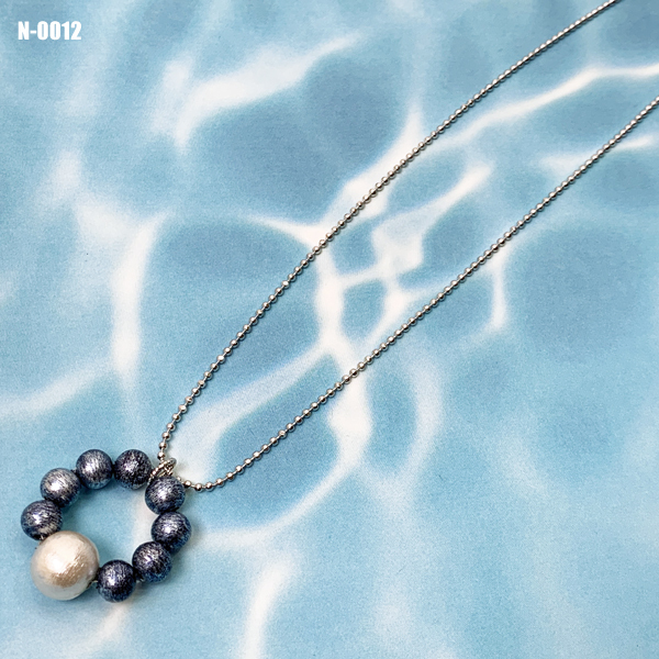 > 送料無料! 本藍染 コットンパール 丸形 ネックレス かわいい カジュアル アクセサリー パーティー 結婚式 ◇N-0012