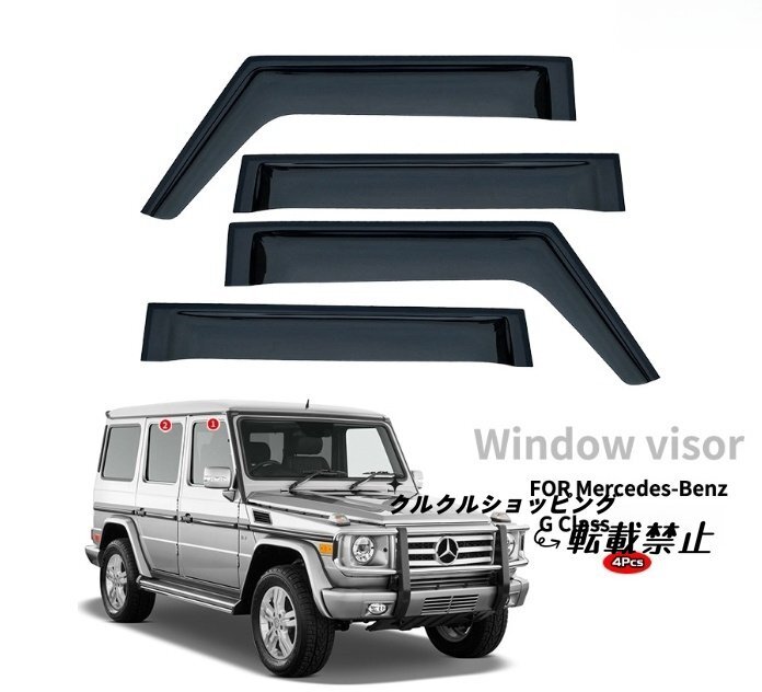 - メルセデス ベンツ Gクラス W463 G500G55 G63AMG 2004-2018年 サイド ウインドウバイザー サイド 外装4Pセット 換気 雨除け 風切り音防止