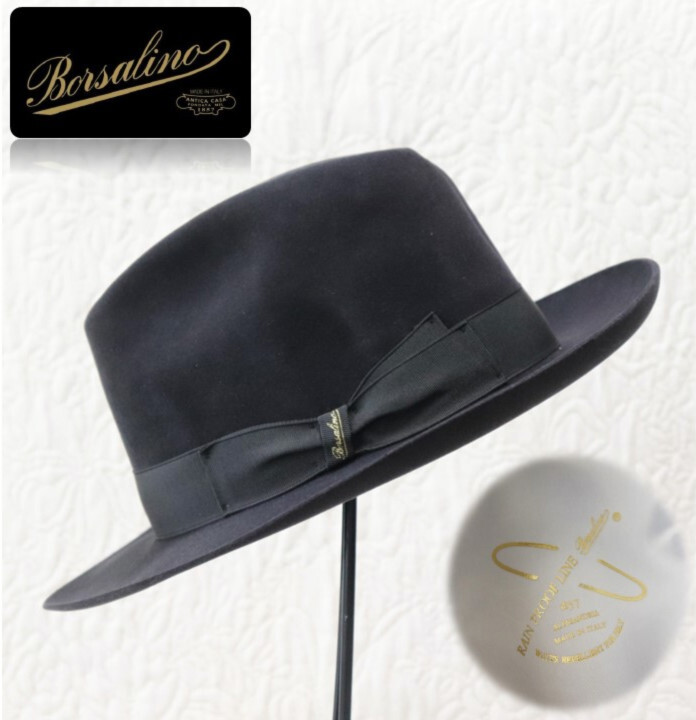 > 48,400円新品タグ付き【ボルサリーノ】RAIN PROOF LINE ラビットファー フェルトハット 56(56.5) v5972