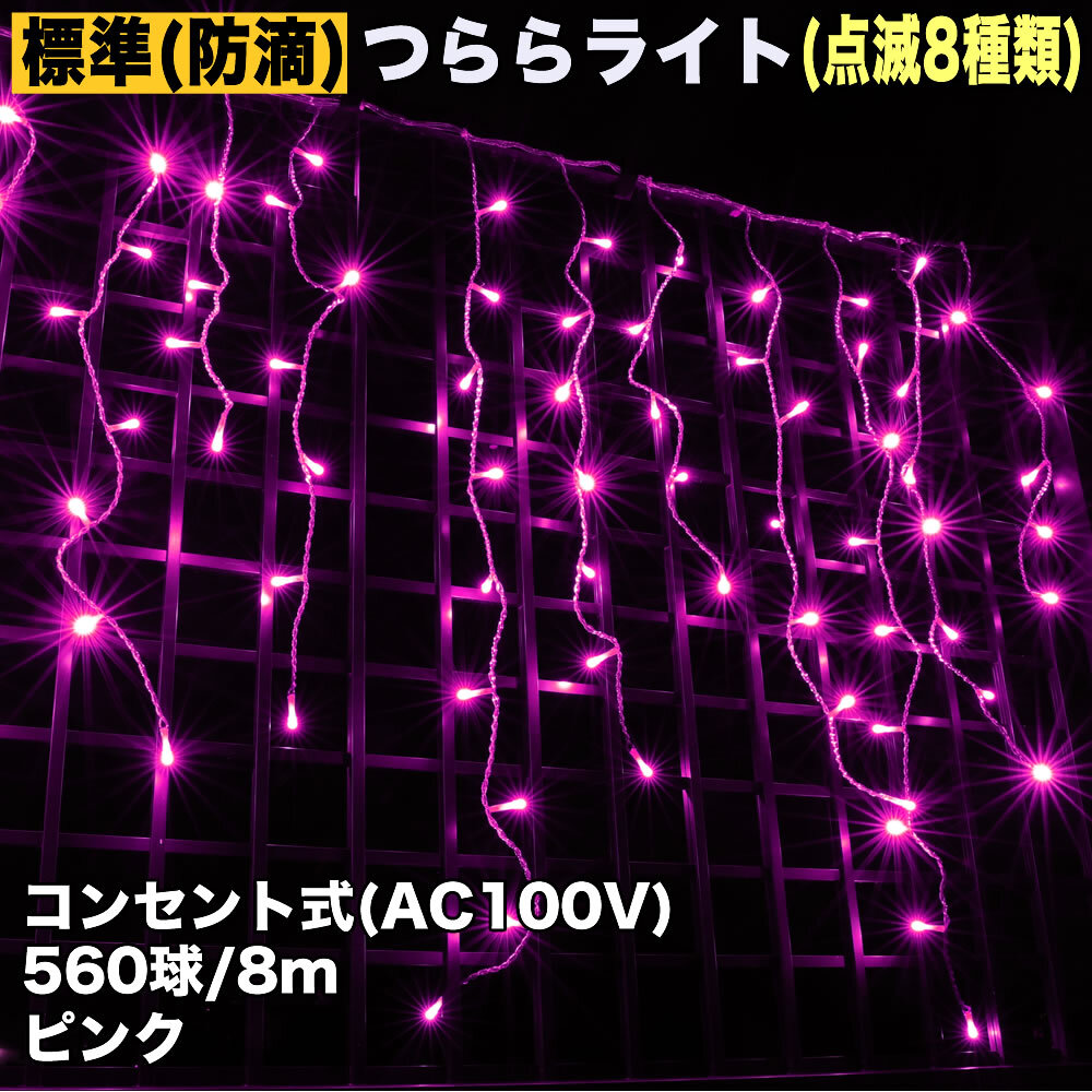 > クリスマス 防滴 イルミネーション つらら ライト 電飾 LED 8m 560球 ピンク 桃 8種類点滅 Aコントローラセット