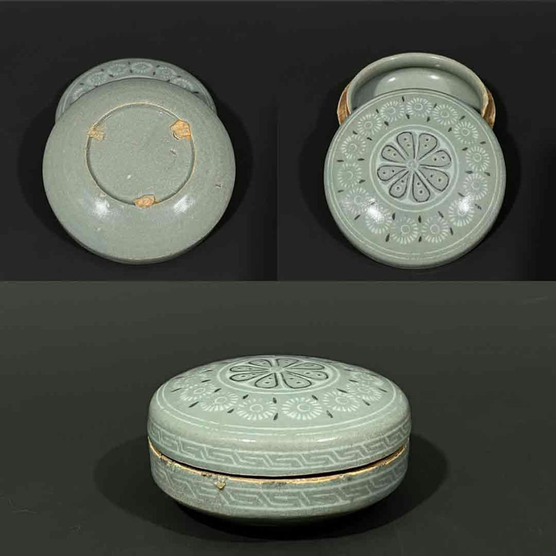 - ▼渡鶴羽▼P820珍品旧蔵 朝鮮 高麗磁 朝鮮古陶磁器 古高麗 李朝時代 高麗磁青磁粉盒