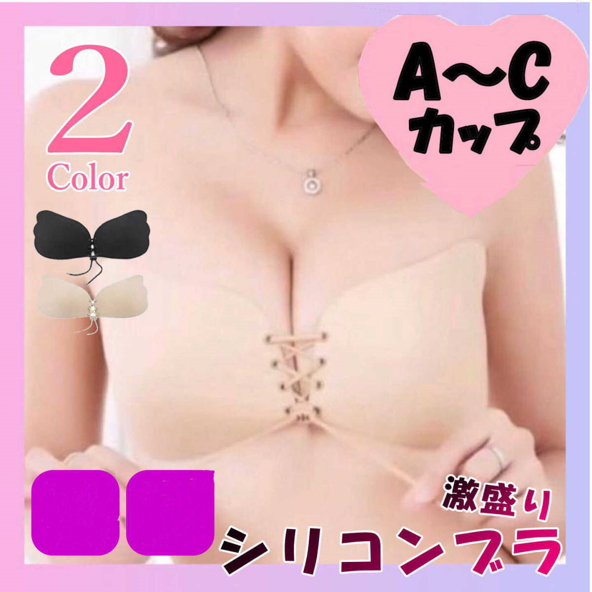 - A-Dカップ ヌーブラ ベージュ 美盛 激盛 紐付き ウエディング パーティー ウイング羽形状 天使の羽 シリコンブラ DJ702