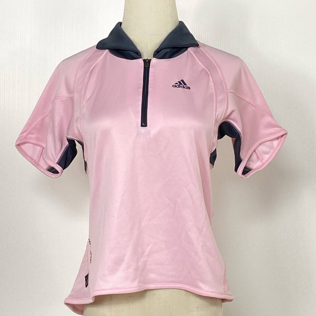 > YZ1017 adidas アディダス レディース 半袖 ポロシャツ スポーツウェア M ピンク 万能 テニス バドミントン ウェア 美品 薄手 USED 古着