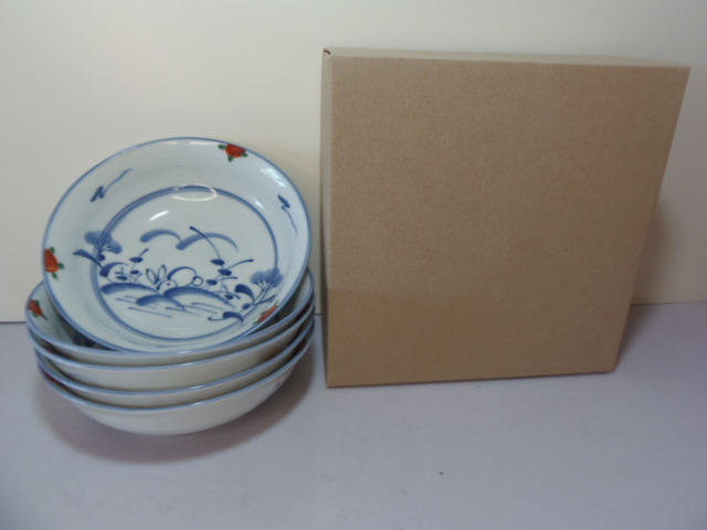 ●s27 【Aito】 煮物鉢揃 5客セット 赤絵うさぎ ゆらぎ