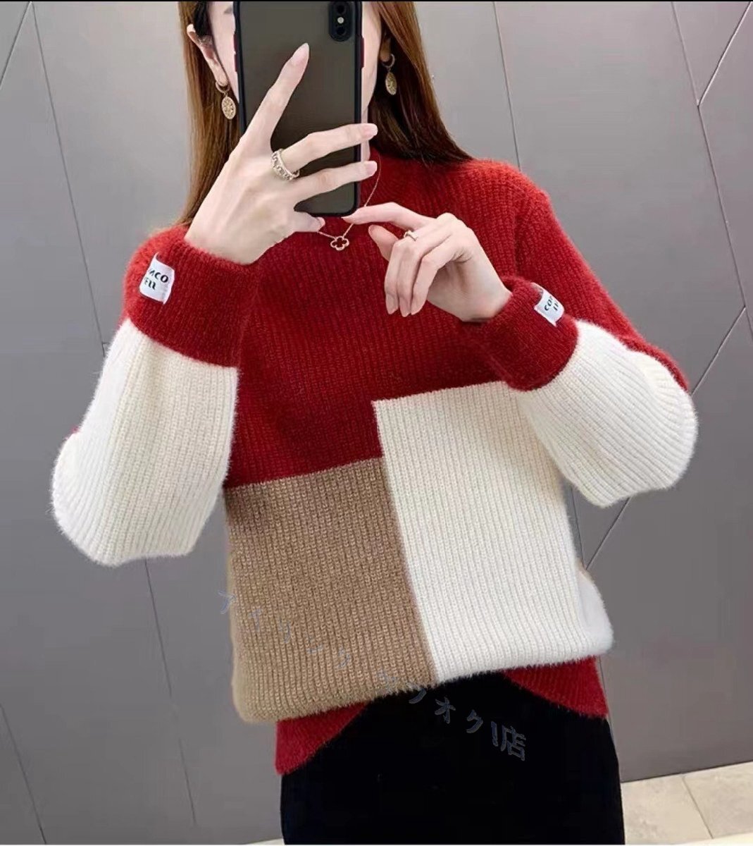 > ☆新品Fサイズ 秋冬 オシャレタートルネック暖かい ニットセーター ふんわり袖 20304050代 着痩せ ニットトップス