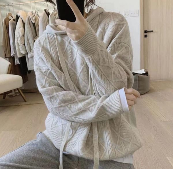 - ☆新品M-XLサイズ 秋冬き おしゃれ 長袖 ニットトルーズ ニットセ カジュアル フード付ーター ップス ゆったり 仕事 大人 通勤