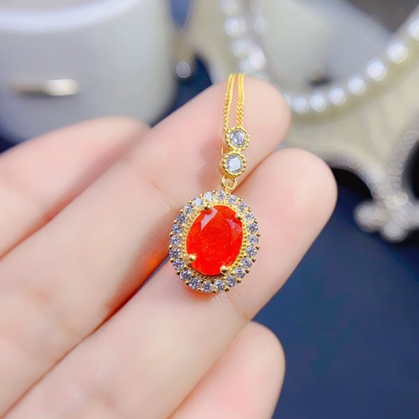- 【証明書付き】女性用ナチュラルファイヤーオパールネックレス、7×9mm、18kゴールドメッキ、最初の入札者様は開始価格で購入可能