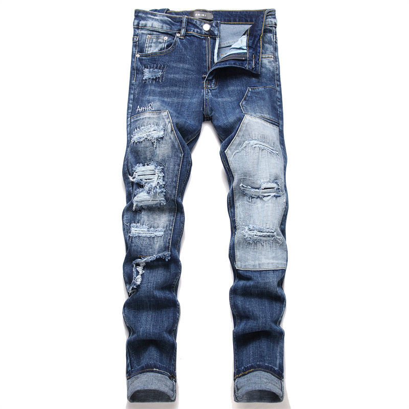 > デニムパンツ メンズ*新品 ジーンズ ジーパン Gパン ダメージ加工 バイクパンツ ライダーズパンツ ロング【3817-1】ブルー W34