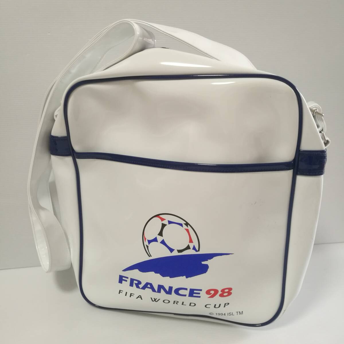 - [G1069]FRANCE 98 FIFA WORLD CUP ショルダーバック /レトロ/エナメル/白/紺/ワールドカップ/1998年/フランス/サッカー/バッグ/かばん