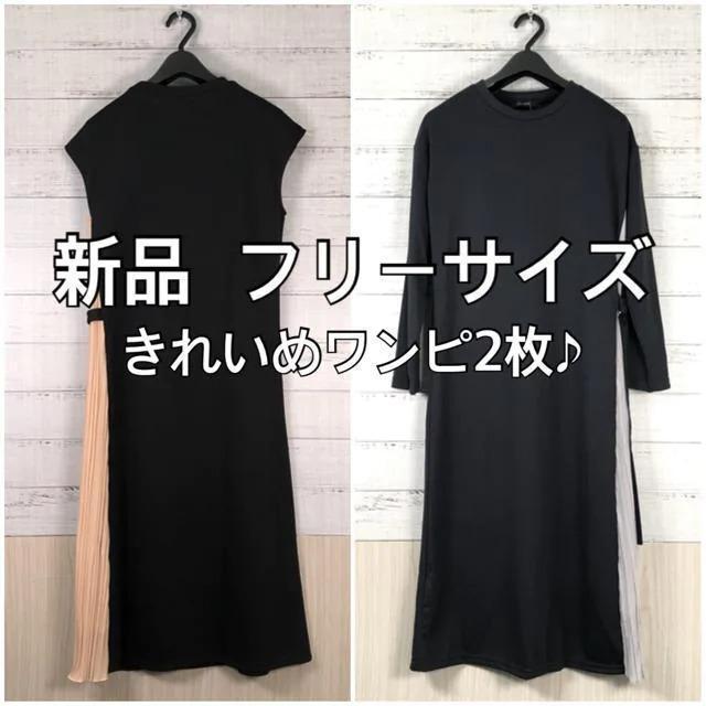 - 新品☆フリーサイズ♪横プリーツきれいめオシャレロングワンピース2種☆p132