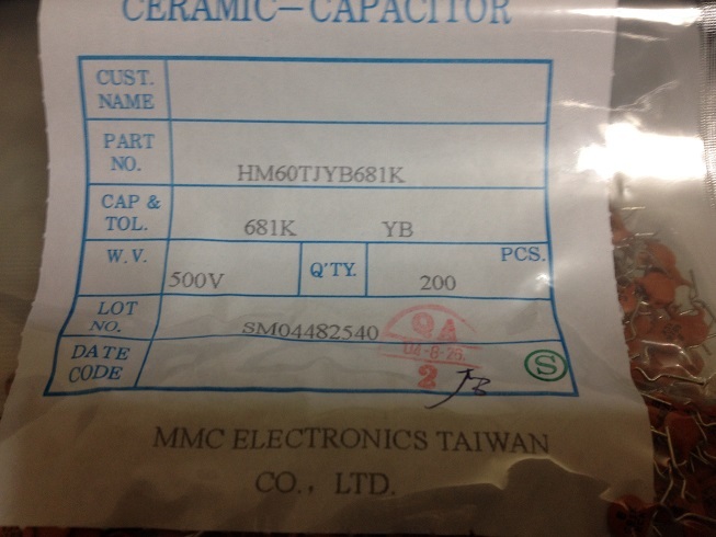 - 円板型セラミックコンデンサ HM60TJYB681K YB特性 500V 680pF 10個