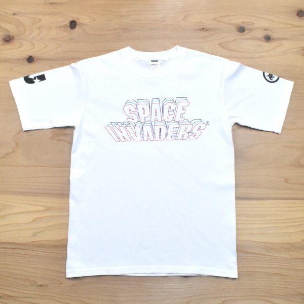 - 2000sUSA古着 LOUS × TAITO スペースインベーダー ロゴ Tシャツ sizeL 白 ホワイト コラボ タイトー 企業 会社 ゲーム 2000年代 Y2K