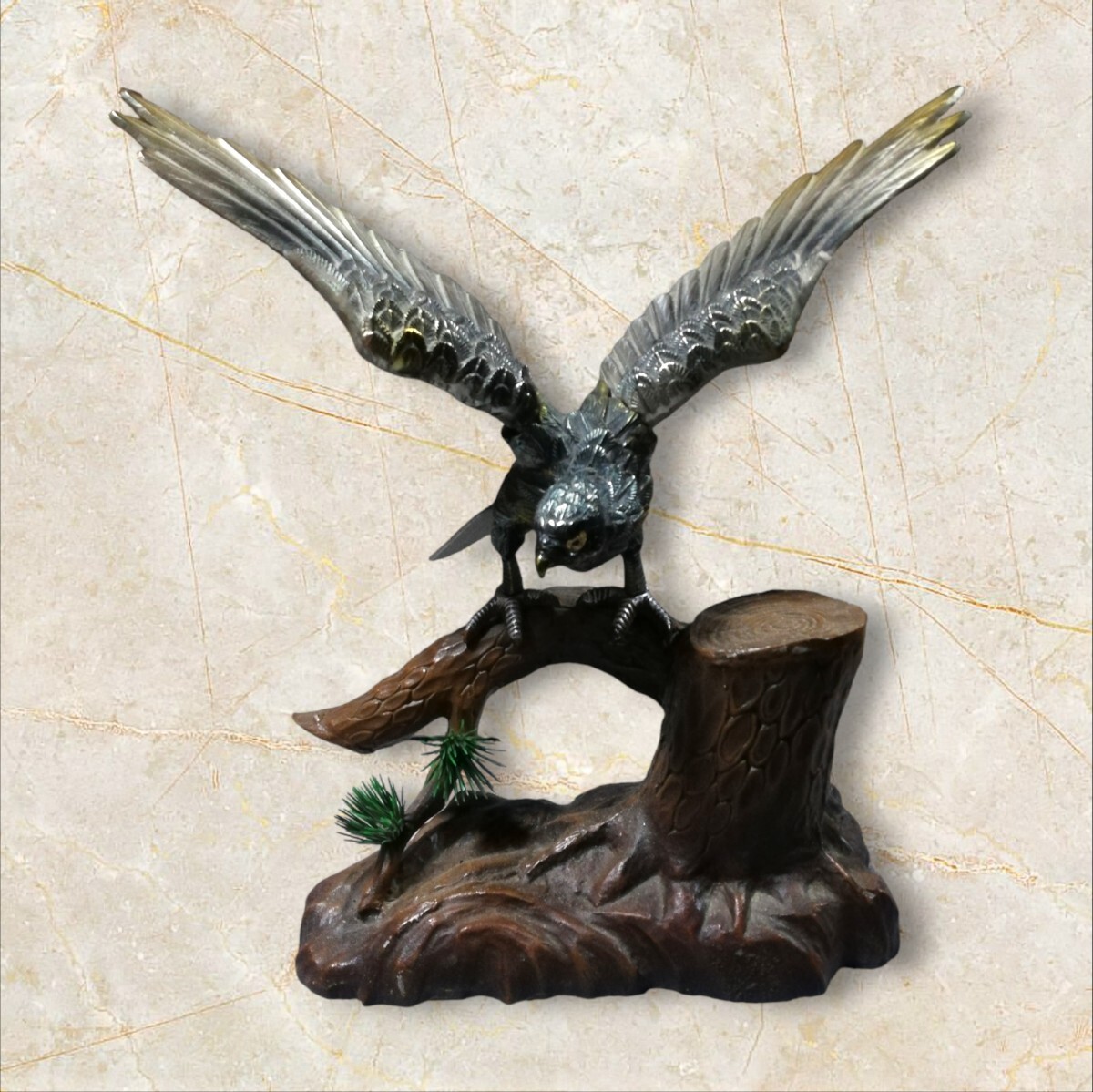 > 送料無料!【縁起物】 鷹 たか 金属製品 鷲 ワシ 鳥 猛禽類 動物 金属製 置物 鉄製 アンティーク オブジェ インテリア