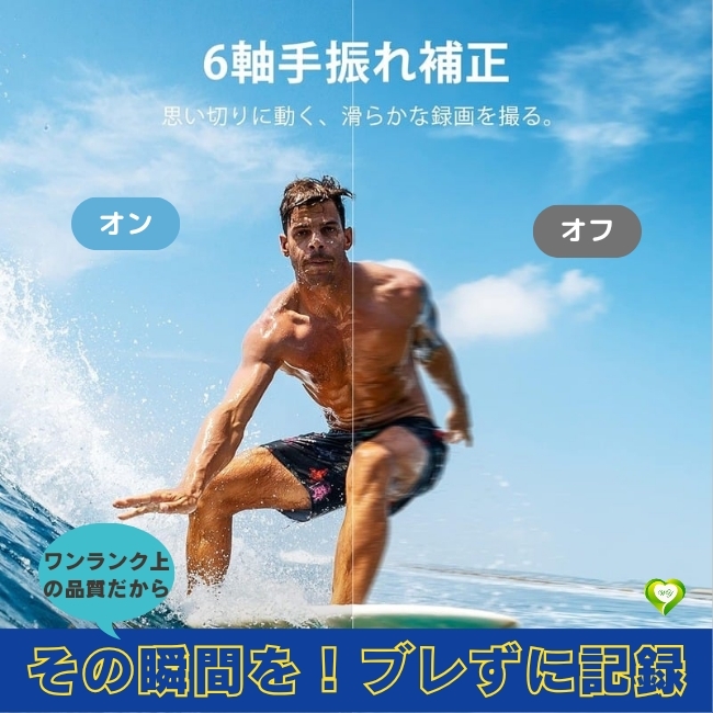 > 【その瞬間を!ブレずに記録】アクションカメラ ウェアラブルカメラ 6軸手ぶれ補正 4K 64GBカード付き IPX8本機防水10M 高品質 多機能