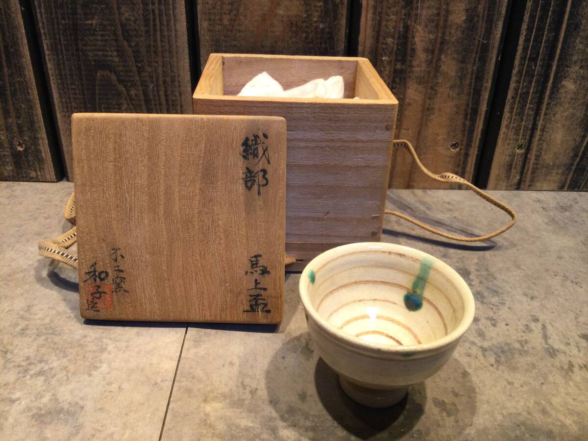 - 美品 織部 不二窯 佐藤和子造 馬上盃 技工名品 人気女流作家 ぐい呑 酒盃 酒器 共箱 保管品 蔵出し