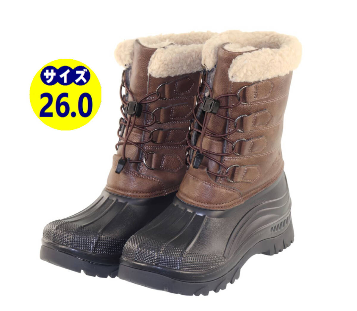- 【新品】男女兼用 防寒防水ダウンブーツ『24341-dbr-260』ダークブラウン スノーシューズ 防寒ブーツ 寒さ対策 防水 ボア 起毛素材