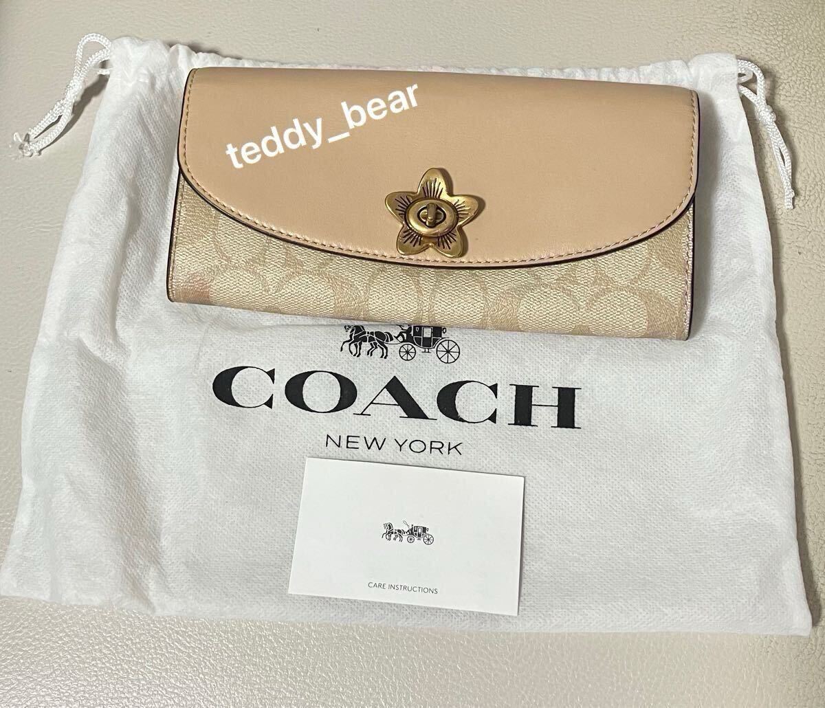 - 美品 COACH コーチ 長財布 財布 シグネチャー 花 フラワー ターンロック スリム エンベロープ ウォレット