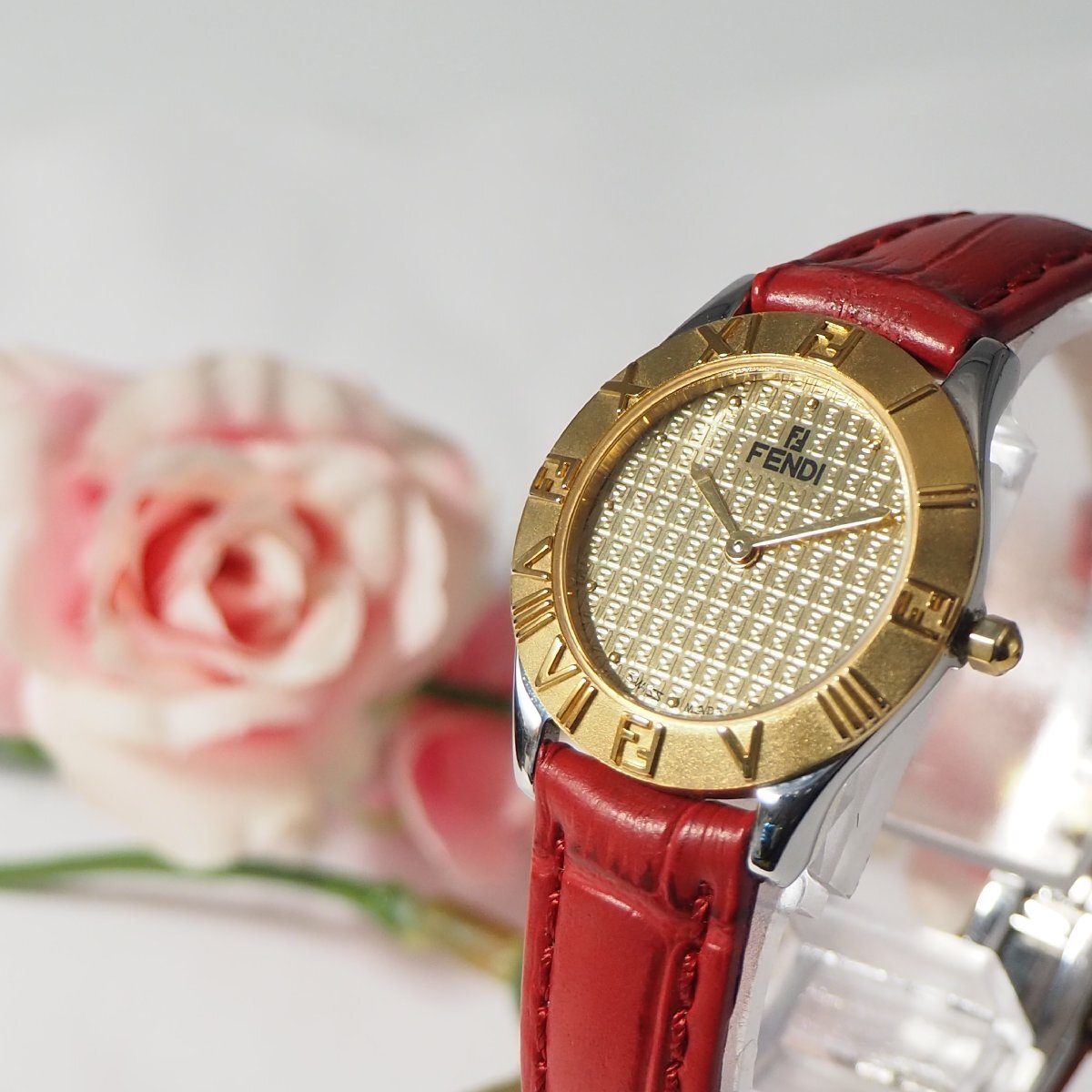 ★★★★ フェンディ ローマン ズッカ柄文字盤 レディース 腕時計 ゴールド F263 中古★★★★