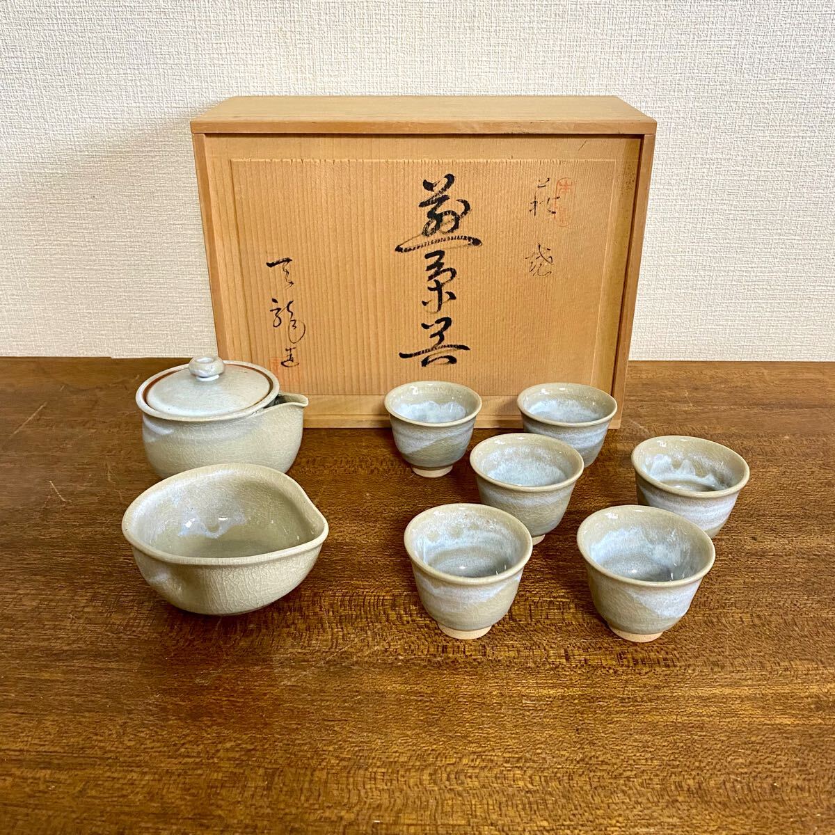 - 萩焼 天龍造 煎茶器 セット / 湯呑 急須 煎茶道具 茶器 茶道具 共箱付き