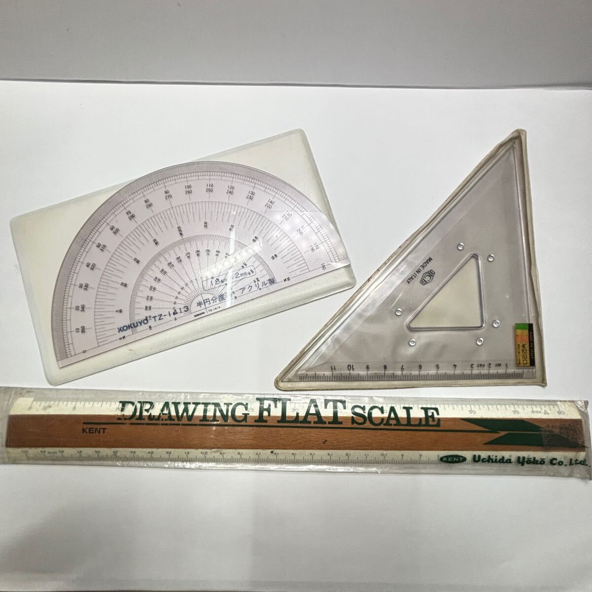 - 【新品未使用】【廃番】【希少品】文具店在庫品 ウチダ30㎝定規 トンボ 三角定規 コクヨ 分度器 昭和レトロ 0241