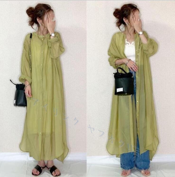 - 新品春 夏 ワンピース レディース カーディガン マキシ丈 ロング マキシワンピース ガウン 透け感 長袖