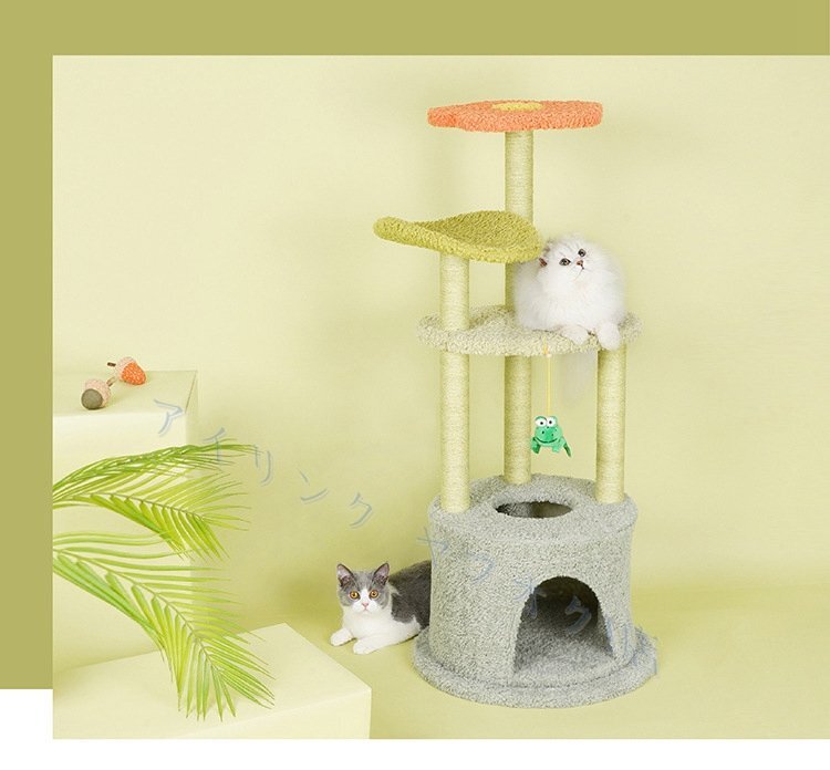 - 新品室内 転倒防止 サイザル 木製 キャットタワー キャットツリー キャットランド 据え置き 木登りタワー 猫タワー 爪とぎ 隠れ家付き