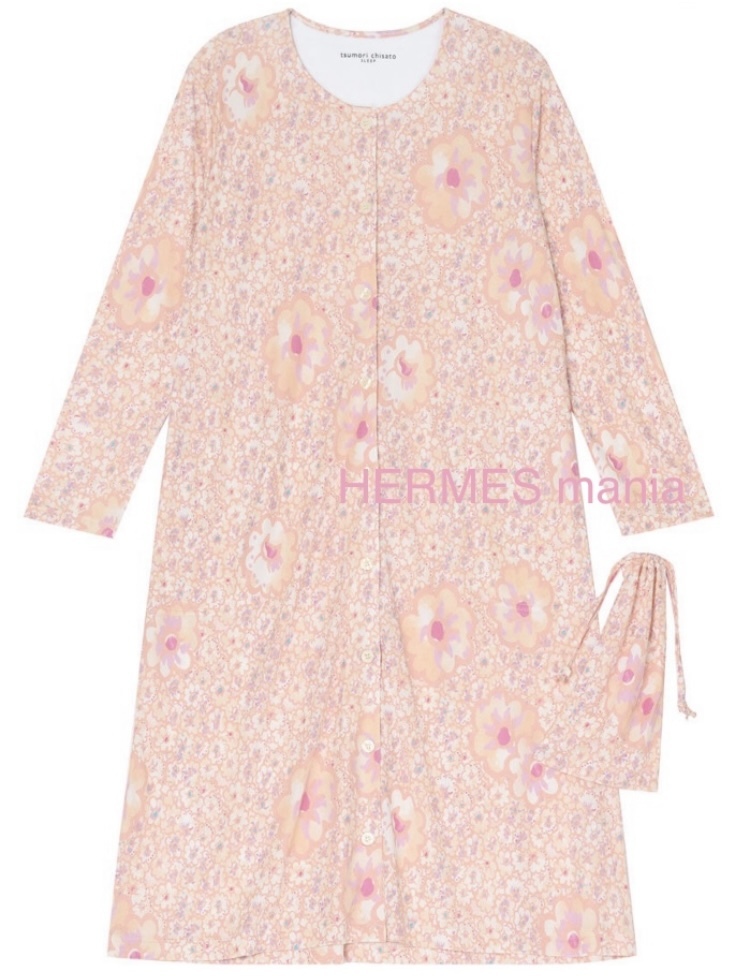 - 定価41800円 ツモリチサト L ワンピース マーガレット シルクニット 絹100% 前開き 巾着 ポーチ付 ワコール パジャマ ガウン 花