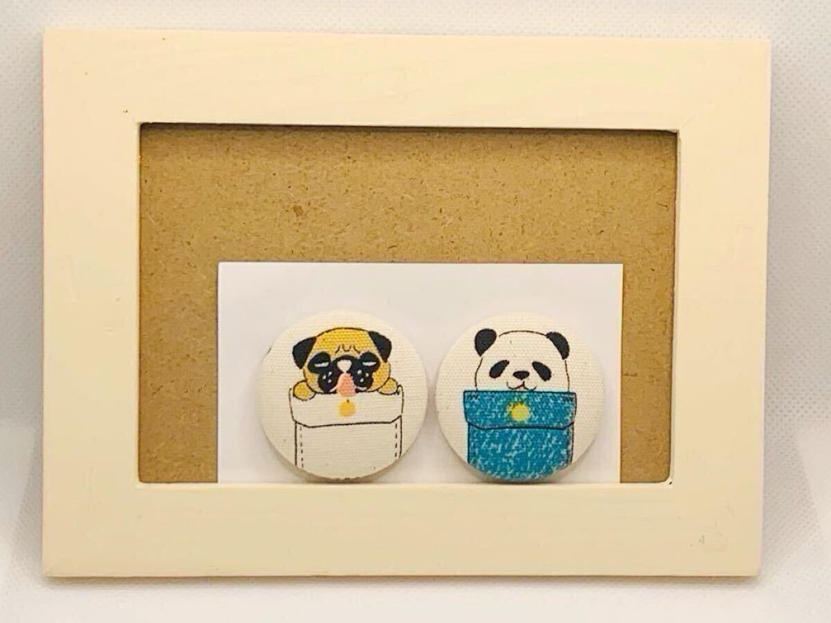 - くるみボタン(11-7)マグネット/磁石/ハンドメイド/2個セット/パンダ/犬