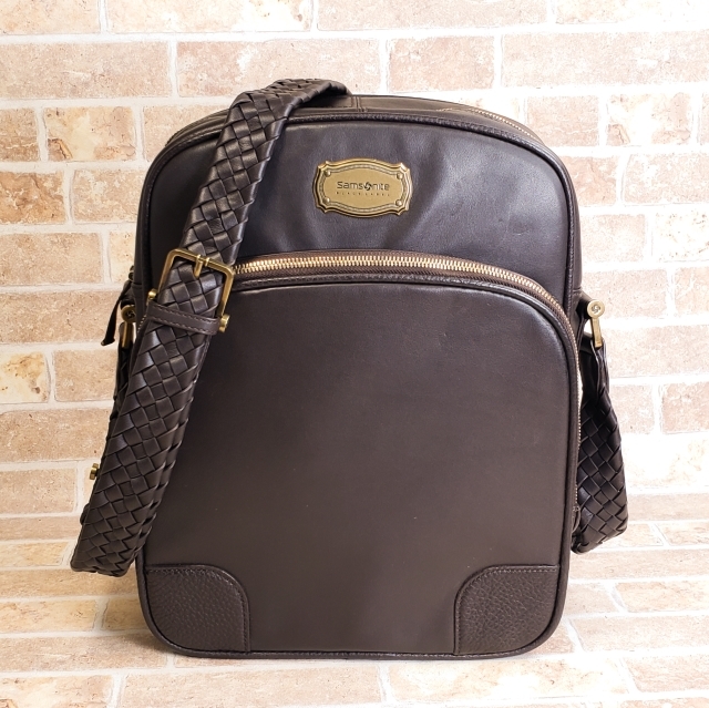 - サムソナイト Samsonite レザー ショルダーバッグ A4OK ダークブラウン 編み込みベルト