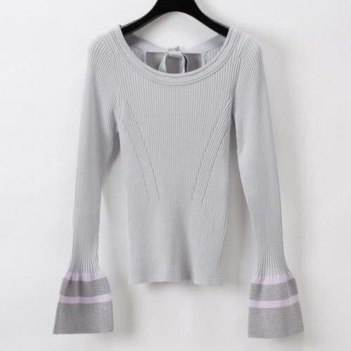 スタイスト保管品 後ろにリボンディティールを飾ったヘルシーな肌見せが今年らしい、バックシャンなニットトップです