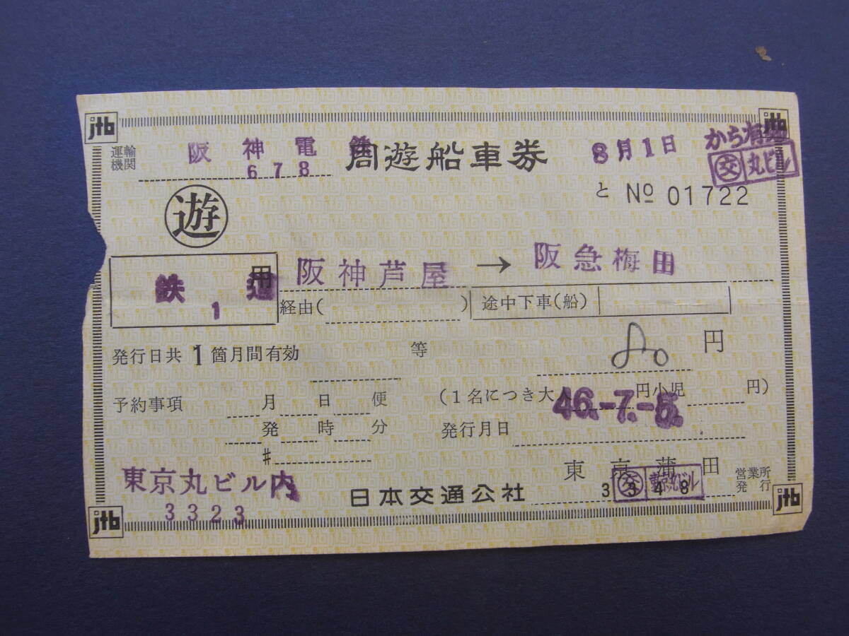 - 阪神電車 *ミス券 周遊船車券 「阪神芦屋⇒阪急梅田」 46.7.5