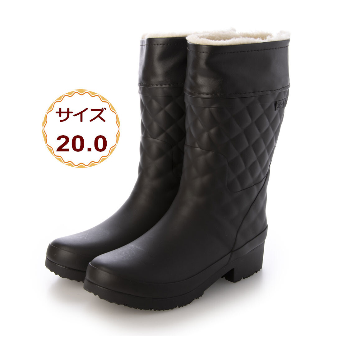 - キッズ 防水 防寒 ロング レインブーツ ファー付き 長靴 雨靴 完全防水 耐候性 屈曲性 防滑底 3E 幅広 黒 男の子 ブラック 24062-blk-200