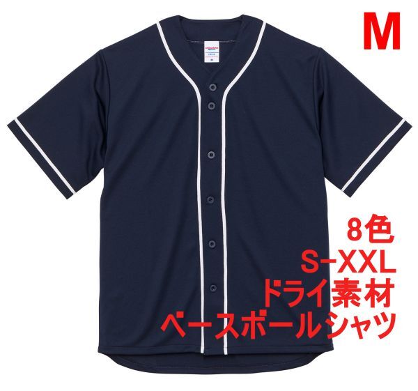 - ベースボールシャツ M ネイビー 野球 ユニフォーム 無地 ドライ ドライ素材 吸水 速乾 シンプル ベーシック A2031 紺 紺色 598201 5982