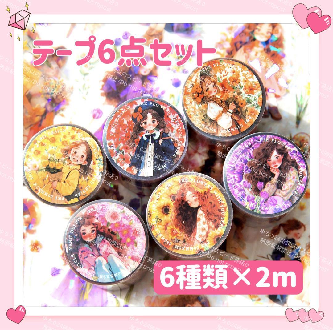 - シール ロールテープ マスキングテープ 2m 6種 PET 光 防水 デコ コラージュ アレンジ 素材 コレクション 可愛い ③