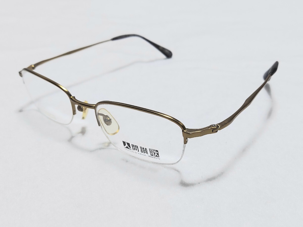 - 新品 人間賛歌 日本製 ブランド カンサイヤマモト メガネ 眼鏡 ハーフリム チタン 軽い 高級感 ゴールド
