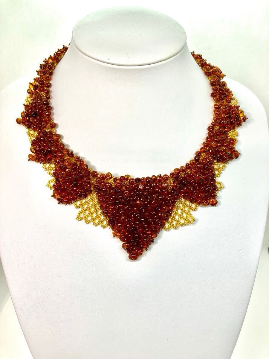 > 【新品】天然琥珀ネックレス*コハク*こはく*アンバー*デラネックレス*ダンス*パーティー*天然琥珀ビーズネックレス*ボリューム