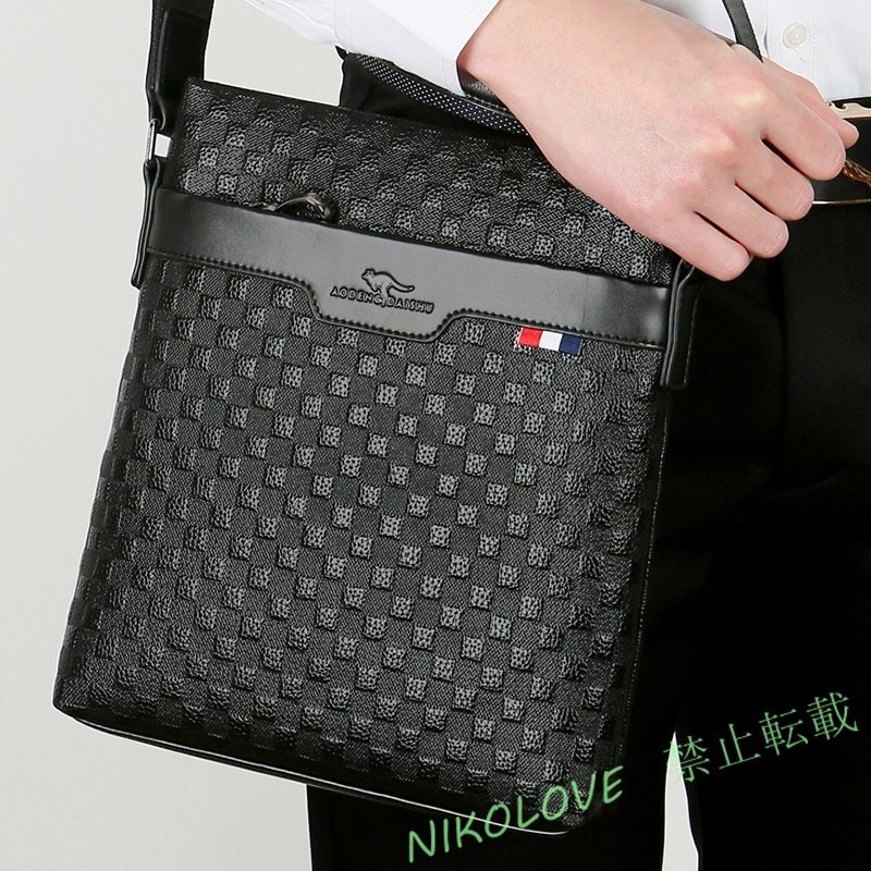 - ショルダーバッグ PUレザー 本革iPad 男性用 斜め掛け メッセンジャーバッグ メンズ 紳士用 かばん 通勤 通学 ブラック AB212
