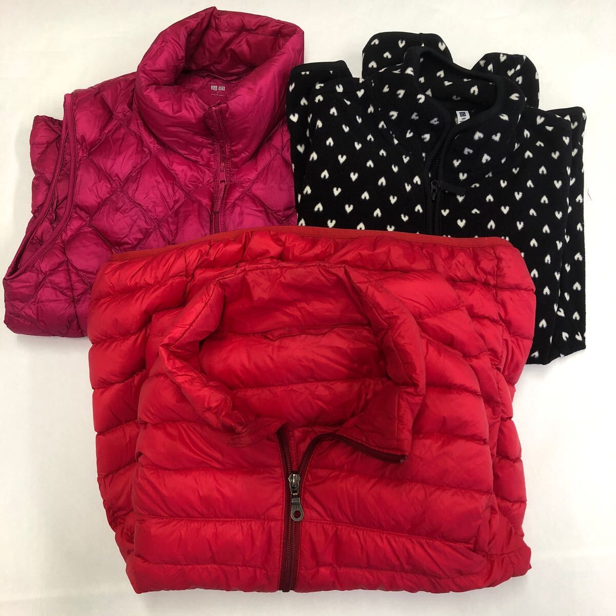 > 【送料無料】UNIQLO ユニクロ イオン ウルトラ ライトダウン ジャケット ベスト フリース S 160cm 3点セット◎中古 レディース