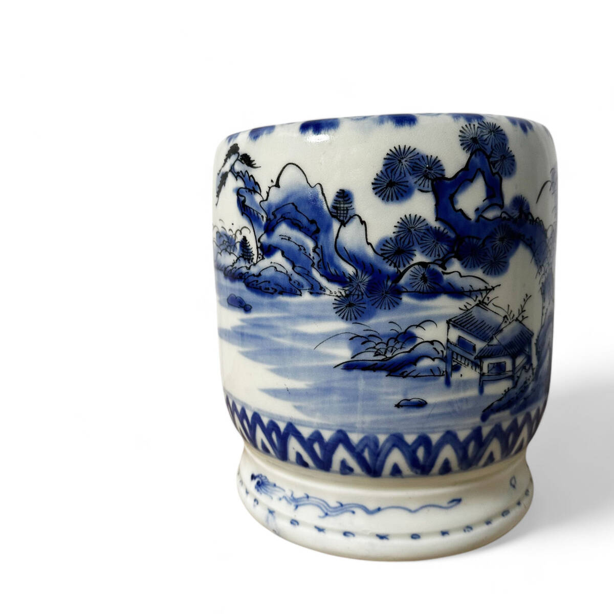 - K2411-17 手炙り 染付 山水図 瀬戸火鉢 古道具 骨董 手あぶり