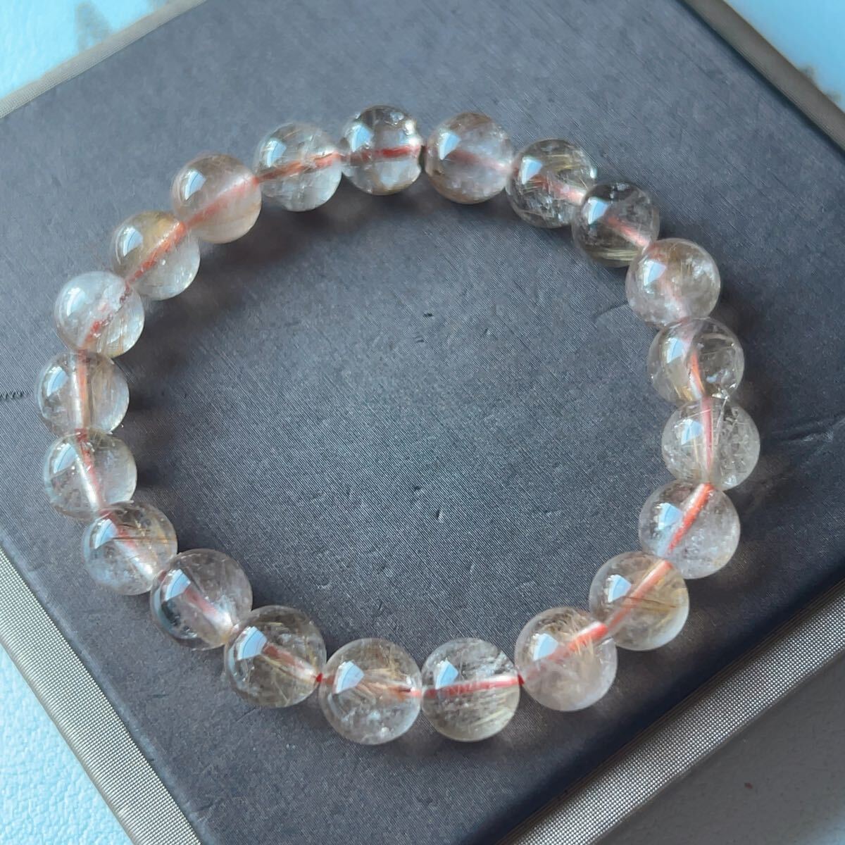 - ◇タイチンルチル◇ゴールドルチルクォーツ◇金針水晶◇ブレスレット◇パワーストーン天然石◇巾着袋付き◇プレゼントにも029B112810