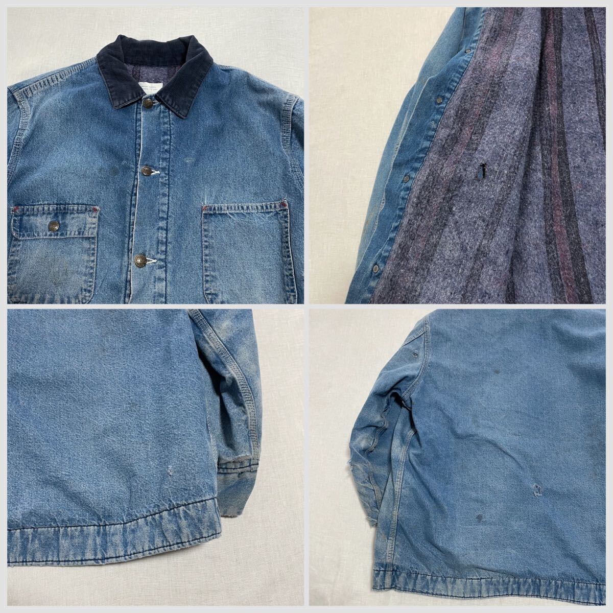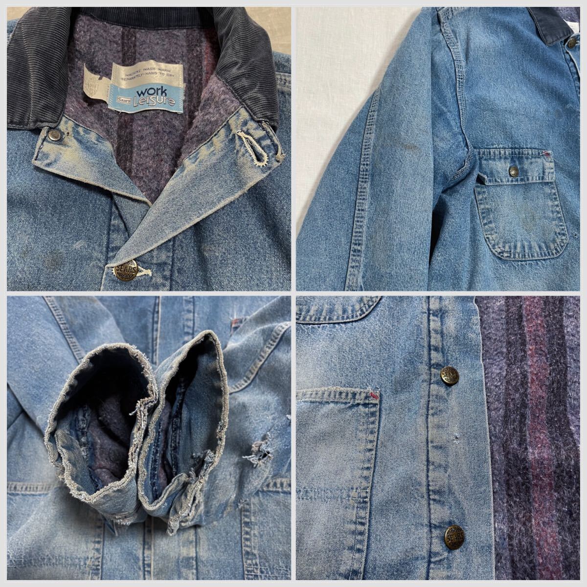 - 雰囲気抜群 SEARS シアーズ 襟コーズ 裏 ブランケット デニム カバーオール Gジャン 40s 50s ヘラクレス