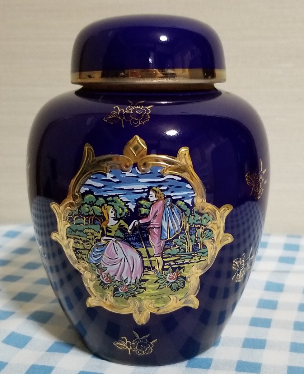 - T-351 メルローズ紅茶 茶葉入れ容器 エディンバラ・ガーデン 陶器製 濃いブルー アンティーク インテリア 保存容器