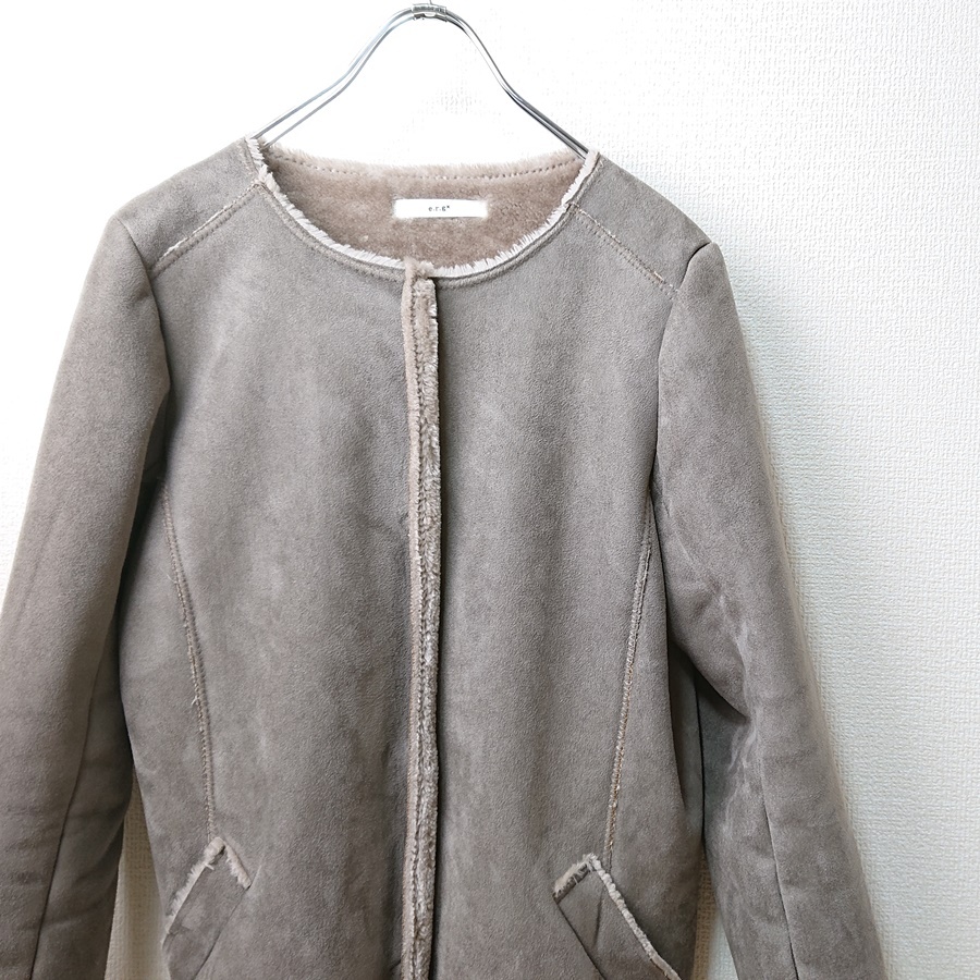 - erg イーアールジー フェイク ムートン ボア コート ノーカラー sizeL 美品