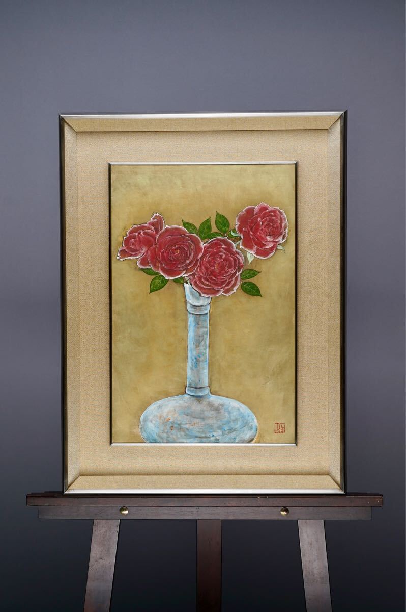 - 真作 石本正「ばら」日本画 画寸(31cmx46cm) サイン・共シールあり 京都市立芸術大学名誉教授 物故巨匠
