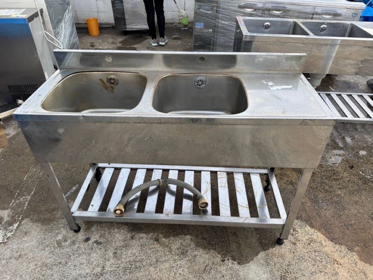 - ○D9805 業務用 ステンレス製 流し台 2槽シンク 水切り 120x45x90○