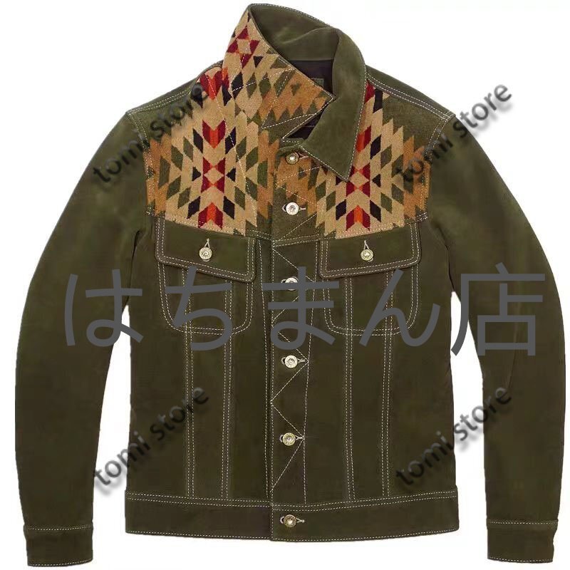 > ナバホ柄 本革 子牛革 カーフハイド レザージャケット ライダース ジャケット カウハイド メンズファッション 牛革 革ジャン S~5XL