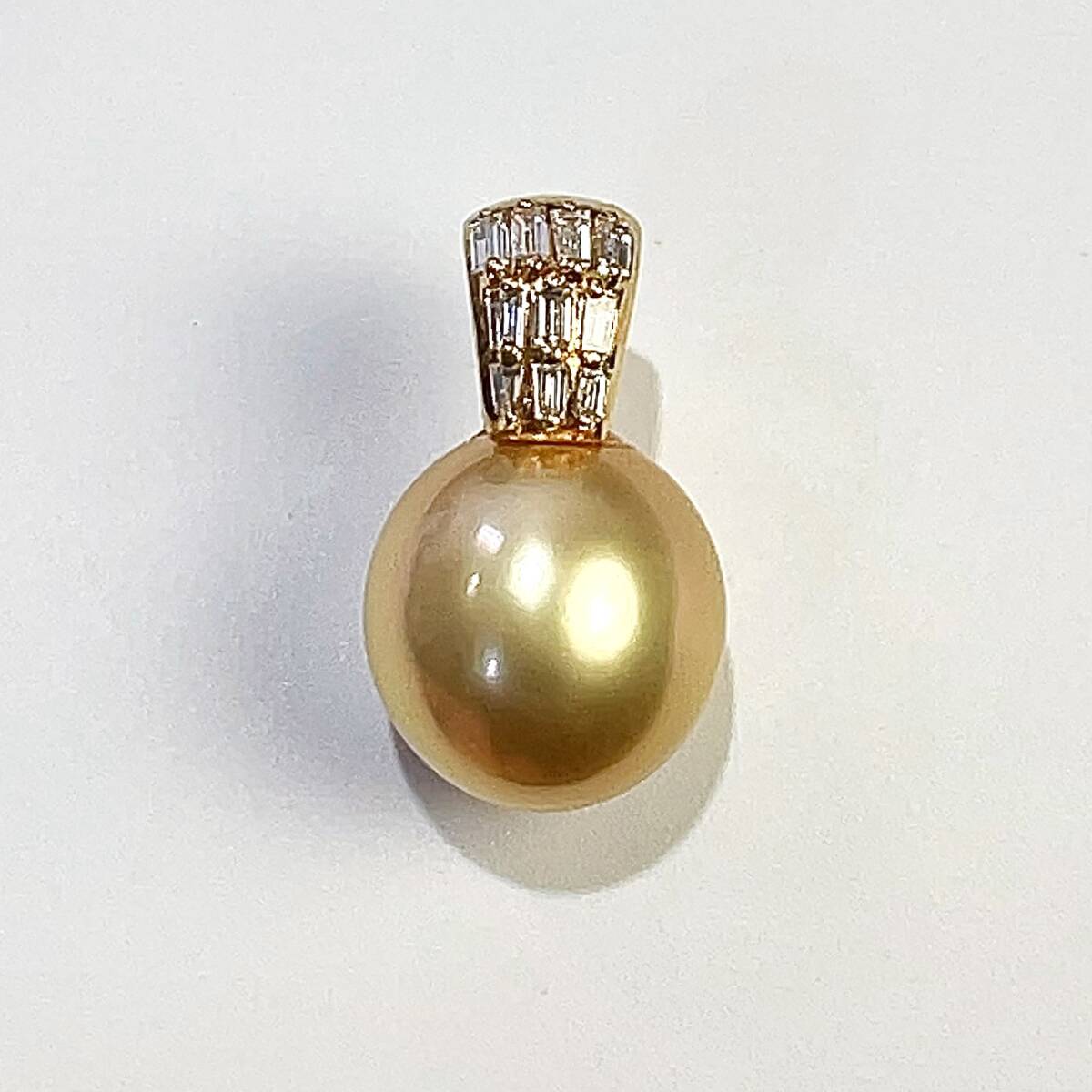 > K18 南洋 ゴールドパール ダイヤ ネックレス ペンダントトップ 天然 本真珠 ゴールド D0.18ct 4.0g レディース アクセサリー 美品
